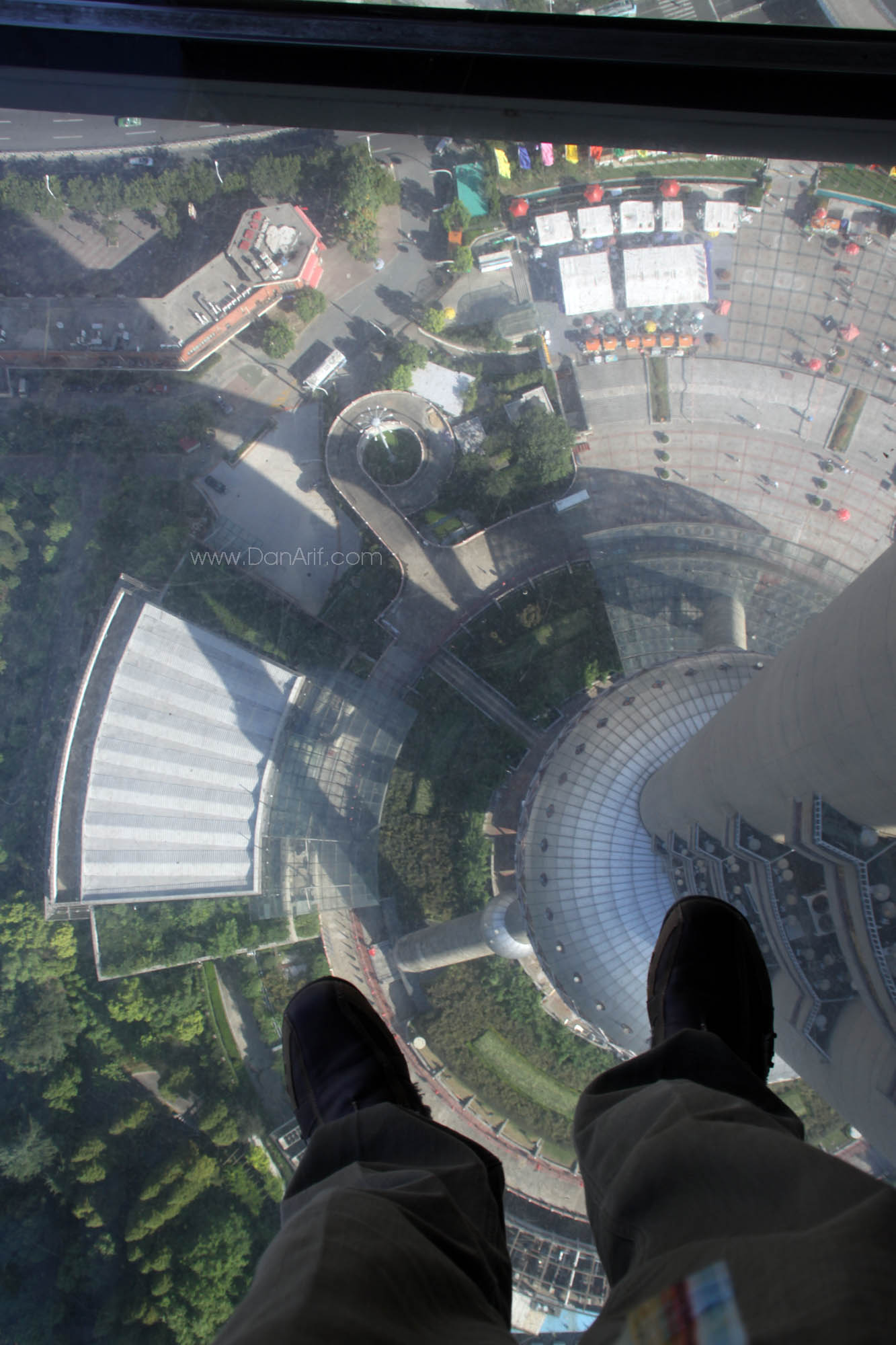 standing up on a glass floor at nearly 300m high